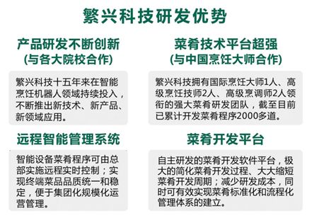 深圳繁興科技是由世界上首臺中餐機器人發明者劉信羽先生在2003年創立,于2015年在新三板掛牌,公司通過可靠性和穩定性的烹飪機器人服務于餐飲市場,在產品運營管理中通過全系列產品線+全場景解決方案+提供特別定制+配套定點服務,形成有競爭力的服務體系,去打造大中城市樣板工程,成為智能新餐飲的標桿企業,助推中餐標準化的發展。