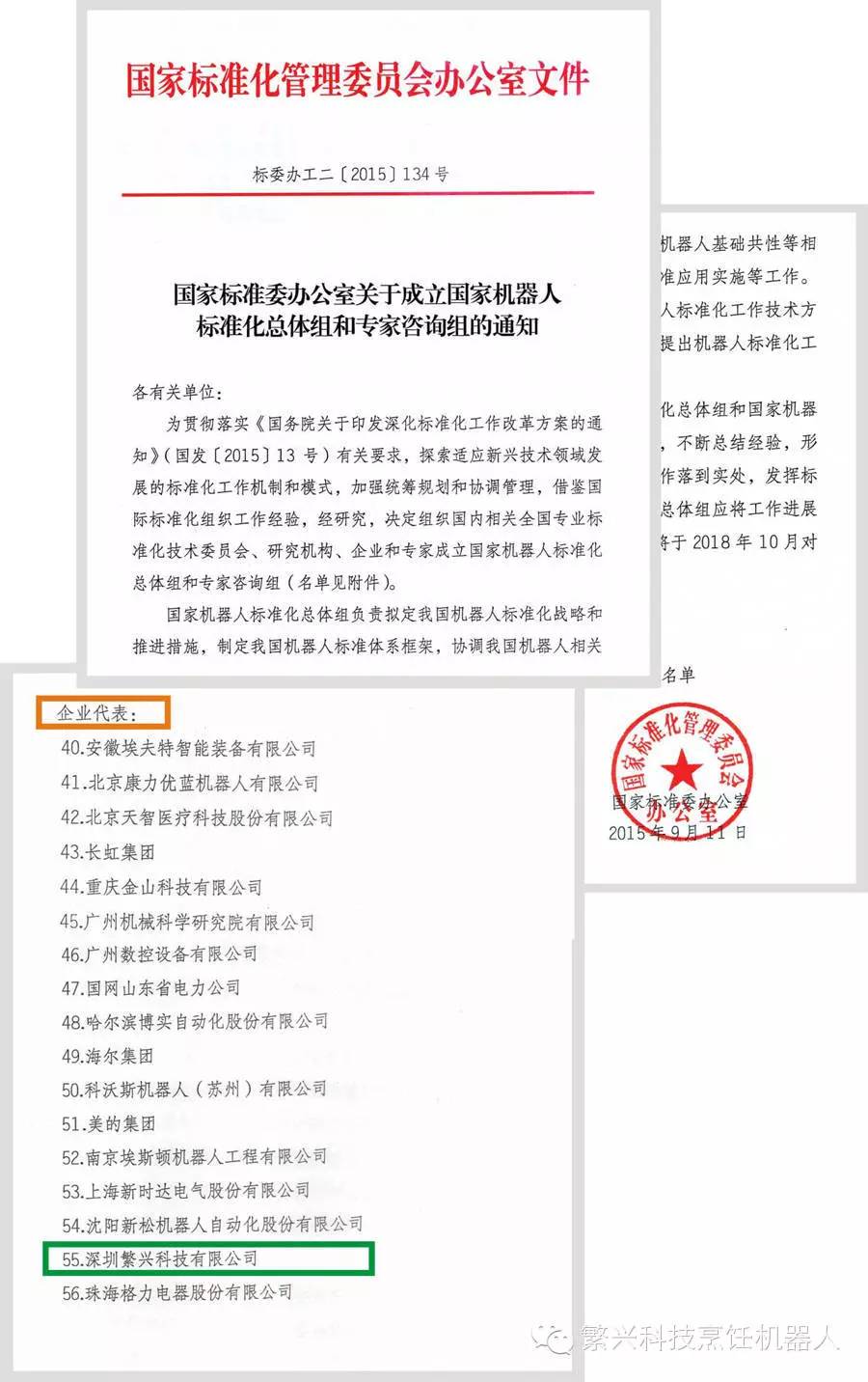 繁興科技成為“國家機器人標準化總體組成員單位”