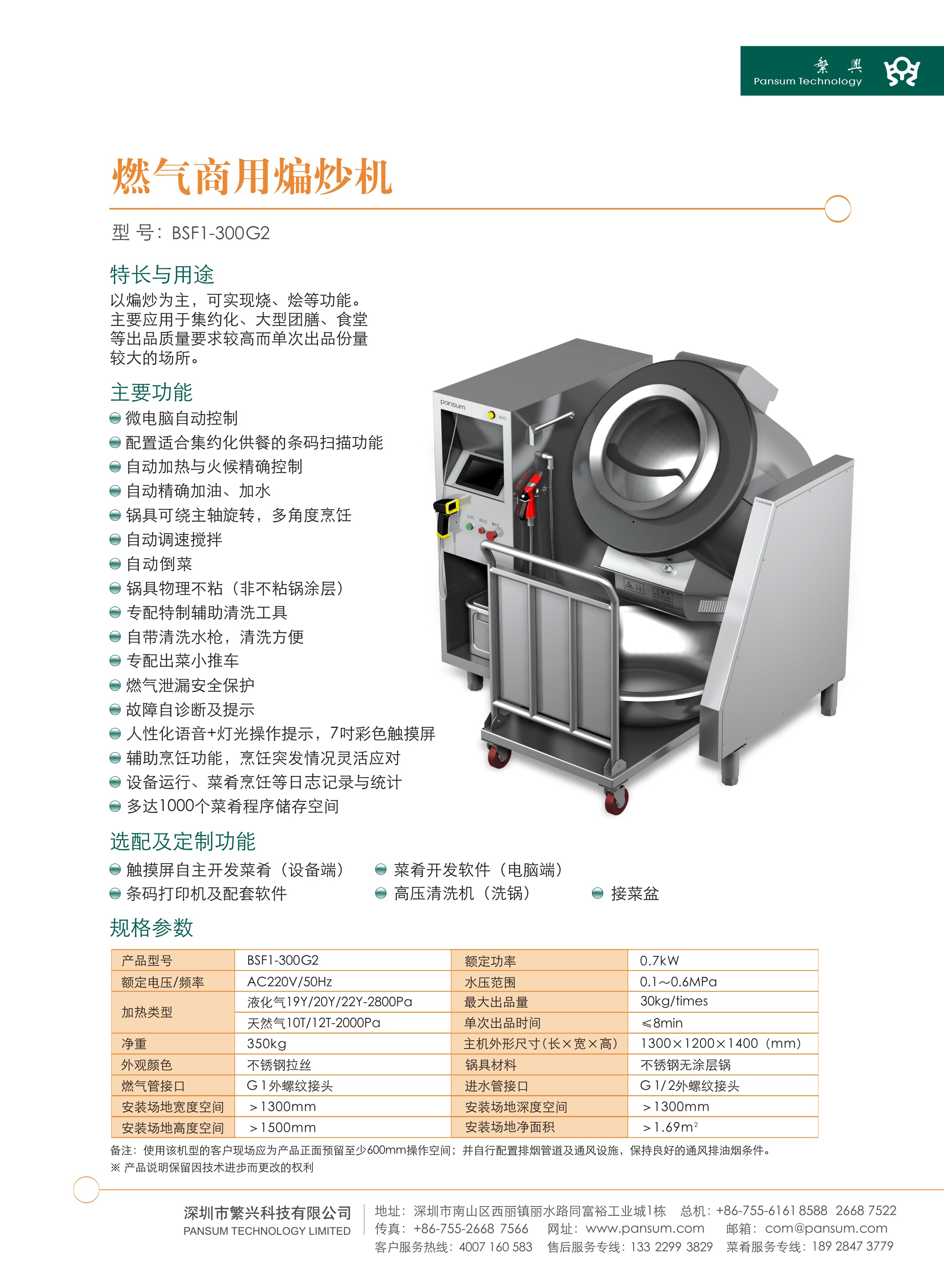 以煸、炒工藝為主。自動精確控制火力,單次烹飪量10-30kg,平均烹飪時間約8min。